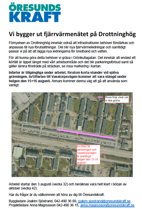 Nu står Öresundskraft i startgroparna att bygga ut fjärrvärmenätet på Drottninghög. För den som inte fått meddelande om detta, kanske det ändå kan vara intressant att få veta. Man kan ju ha ärende till Grönkullagatan även om man inte bor här.
