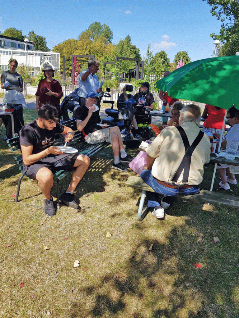 I torsdags blev det våffelfest på Odlingen Drottninghög, Växthuset. Det var Poul Witting och Sajid Kahrimanovic´, från Idé A Biblioteket på Drottninghög, som tagit initiativet till detta evenemang med anledning av lanseringen av höstens program. Vädret var strålande varmt och somrigt, men under träden strax intill odlingen hade man det hur skönt som helst.