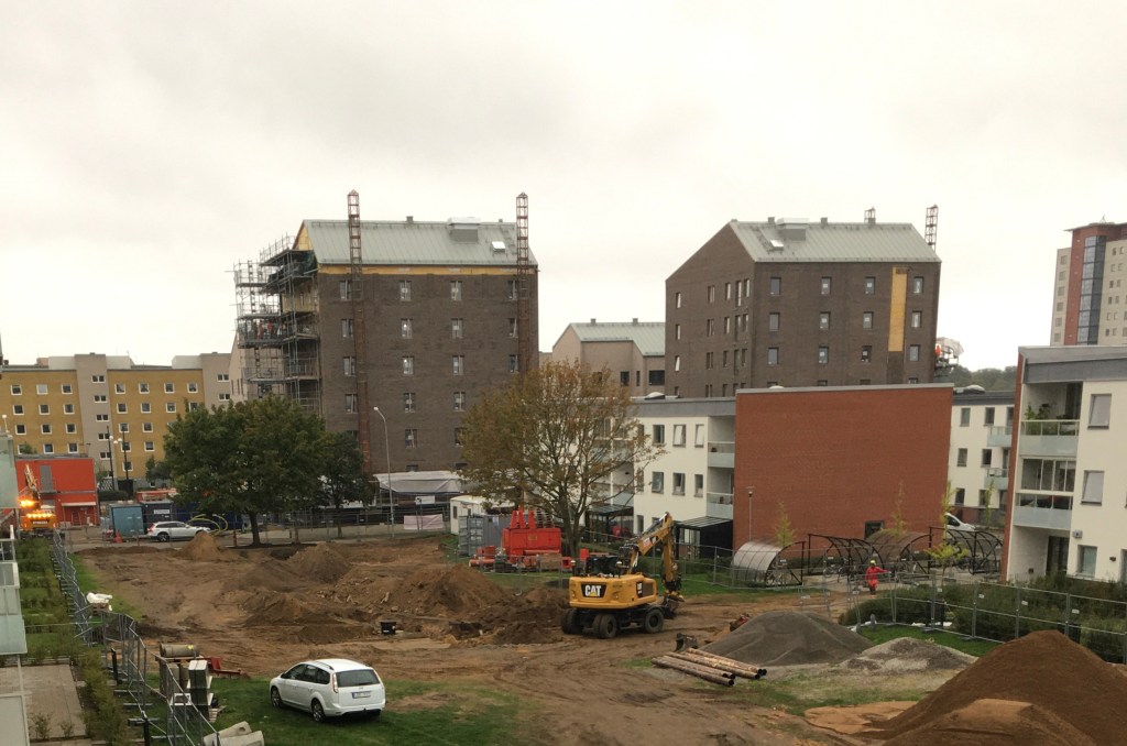 På nästa tomt igen, har Byggföretaget Tornet snart fått klart sina 4 ”torn”. Kvarteret Äppellunden. Fasaderna på de båda fastigheterna mot Vasatorpsvägen är helt klara, och på de två fastigheterna mot Grönkullagatan saknas bara små områden tills de också är klara. Kvar är sedan att balkonger ska monteras, och uthyrningen är i full gång. Ja, hur det ser ut inomhus, är för undertecknad en gåta. En nyfiken gåta…