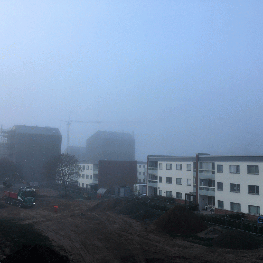 Var är Stenströms byggnad? Och höghuset på andra sidan korsningen? Tornets fastigheter syns relativt bra – och parkanläggarna är i full gång …Sernekes byggkran syns… någorlunda… och en aning dämpade ljud hörs från det blivande Stadskvarteret som Helsingborgshem låter bygga.