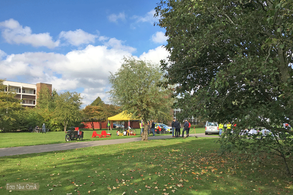 Det var en lördag i blåsighetens tecken, den här första lördagen i oktober månad. Men solen sken och temperaturen var relativt behaglig, när vi möttes vid Fredriksdalsodlingen för att plocka skräp i hela området. Såväl yngre som äldre ställde upp och alla gjorde vad man kunde, allt efter ork och förmåga. Det fanns gott om plockredskap och sopsäckar, och många kom tillbaka till mötesplatsen med välfyllda sådana.
