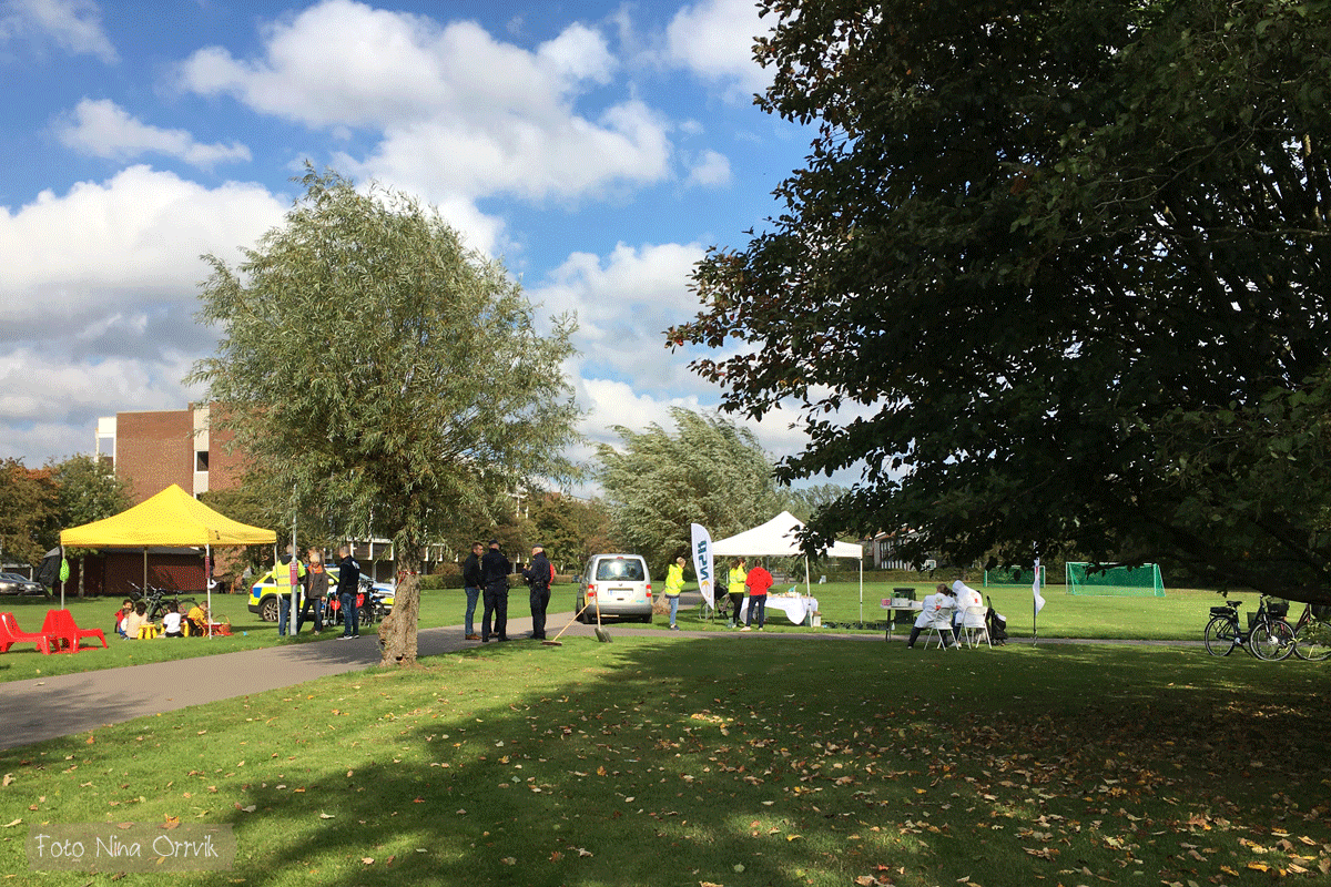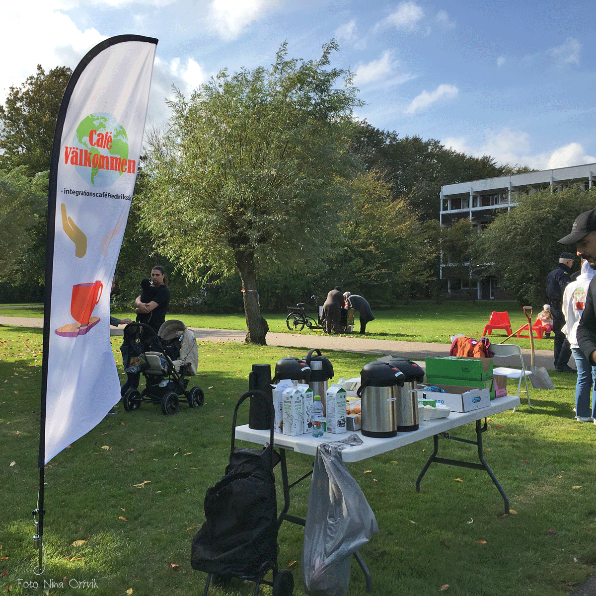 På själva mötesplatsen fanns representanter från olika myndigheter närvarande. Polisen var där, och NSR – sopgubbarna för att prata vardagsspråk. Man var närvarande från Helsingborgshem, Stadsbyggnadsförvaltningen och Rikshem som bjöd på dryck och chokladbollar bland annat. Café Välkommen hade hade också passat på att bulla upp kaffe och lite smått och gott till det. Där var representanter från Hyresgästföreningen, och givetvis kom vi från Odlarföreningen Dalhem Drottninghög Fredriksdal.