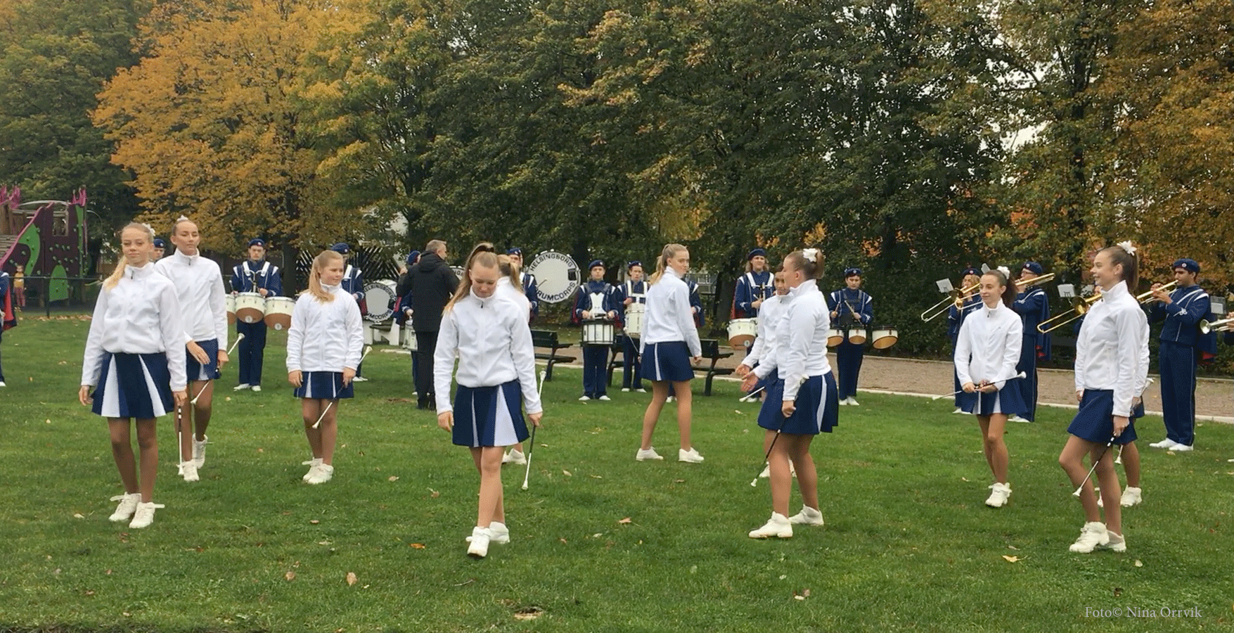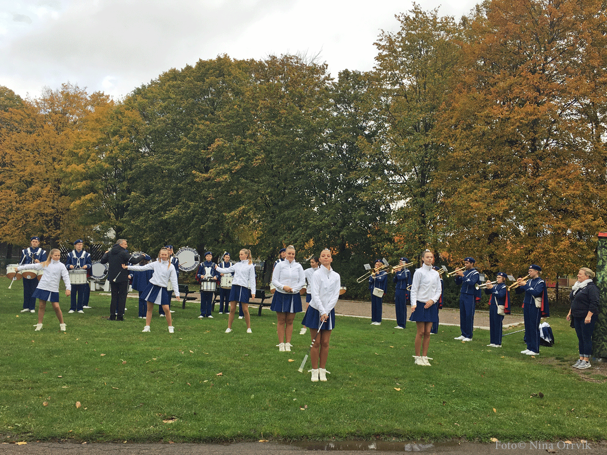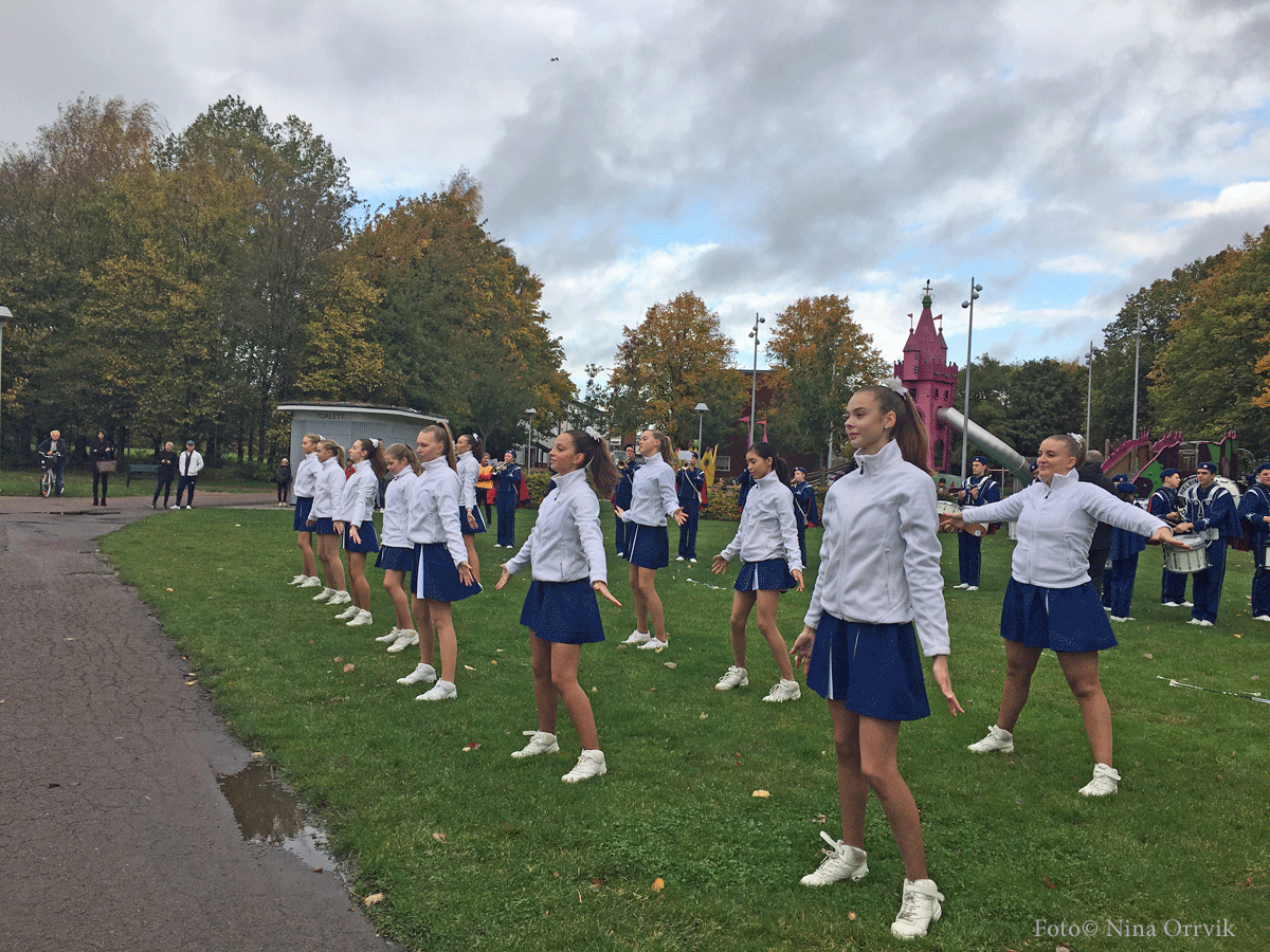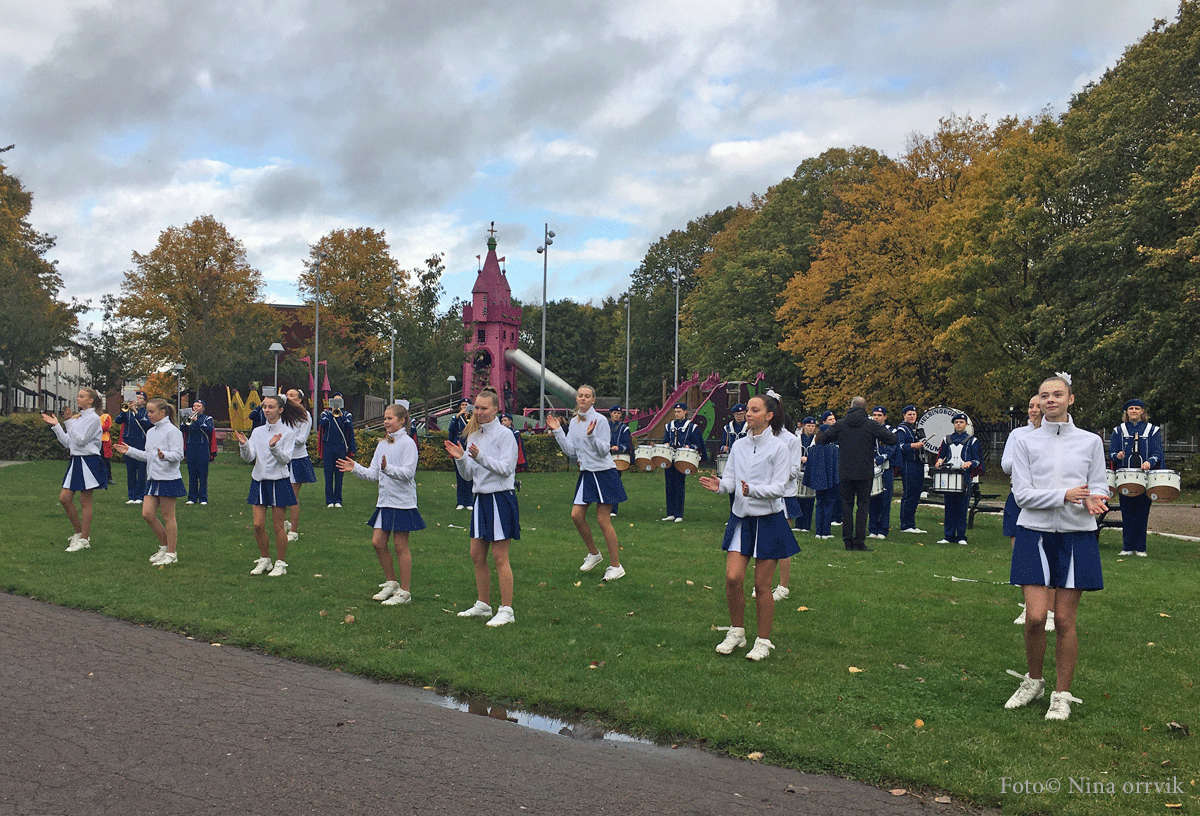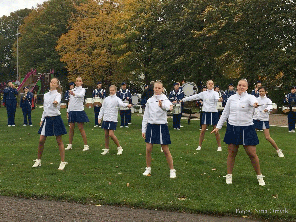 Utanför biblioteket Idé A samlades Drumcorps som sedanslingrade sig genom delar av Drottninghög. Trygghetsboendet Grönkullagatan 41, och Körsbärslunden fick besök innan de stannade på gräsmattan mellan Växthuset och lekplatsen Prinsessor och Drakar. Många var med och applåderade deras insats.