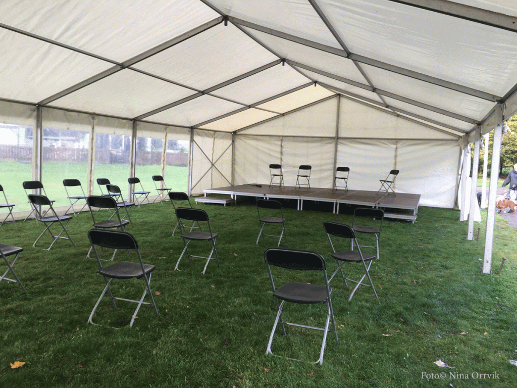 Ett stort partytält hade hyrts in med scen för musiken och plats både för kaffe- eller tedrickande, trötta ben och – eventuellt – som skydd för regn och kraftiga vindar.