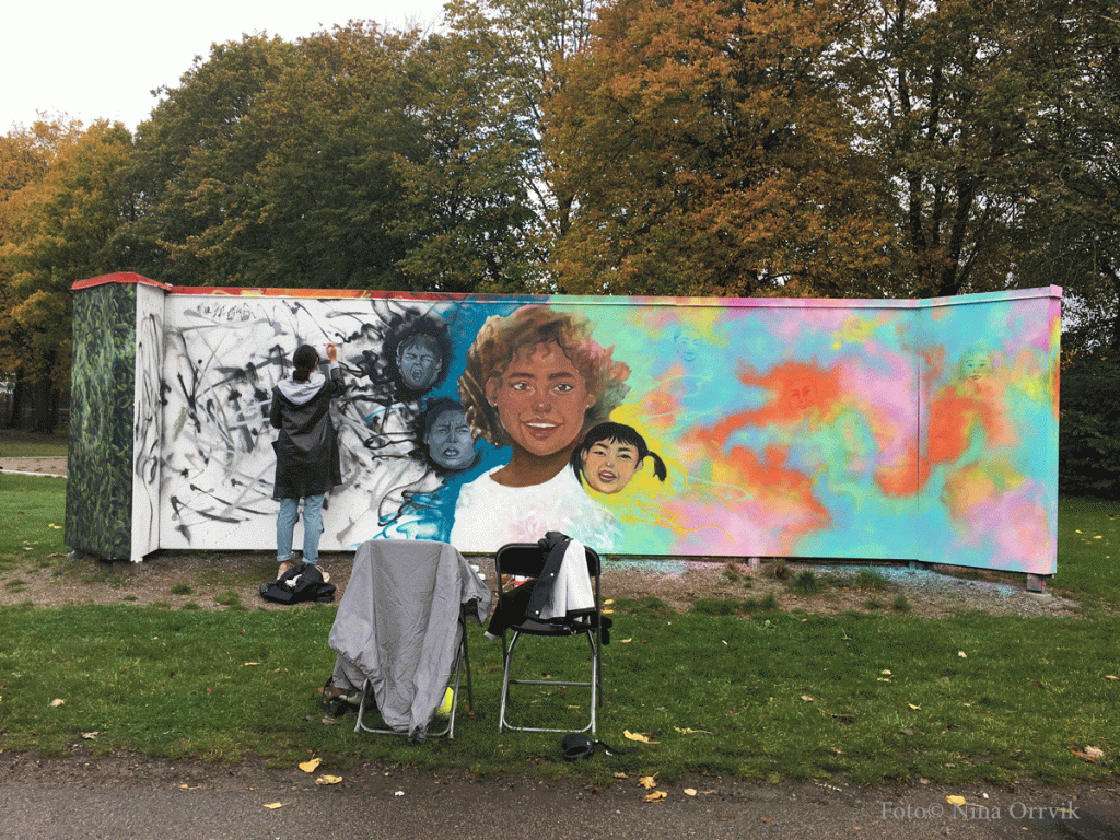 Redan dagen före hade Kulturhotellet börjat måla det nya motivet på Planket. Barn och unga i området hade skissat upp sina önskemål, och nu var de mycket duktiga och konstnärliga ungdomarna från Kulturhotellet i full färd med att måla. En bildhistoria om gott och ont, mellan att må dåligt och att må bra. Om kiv och bråk kontra vänskap och gemenskap. Gemenskap över alla gränser.