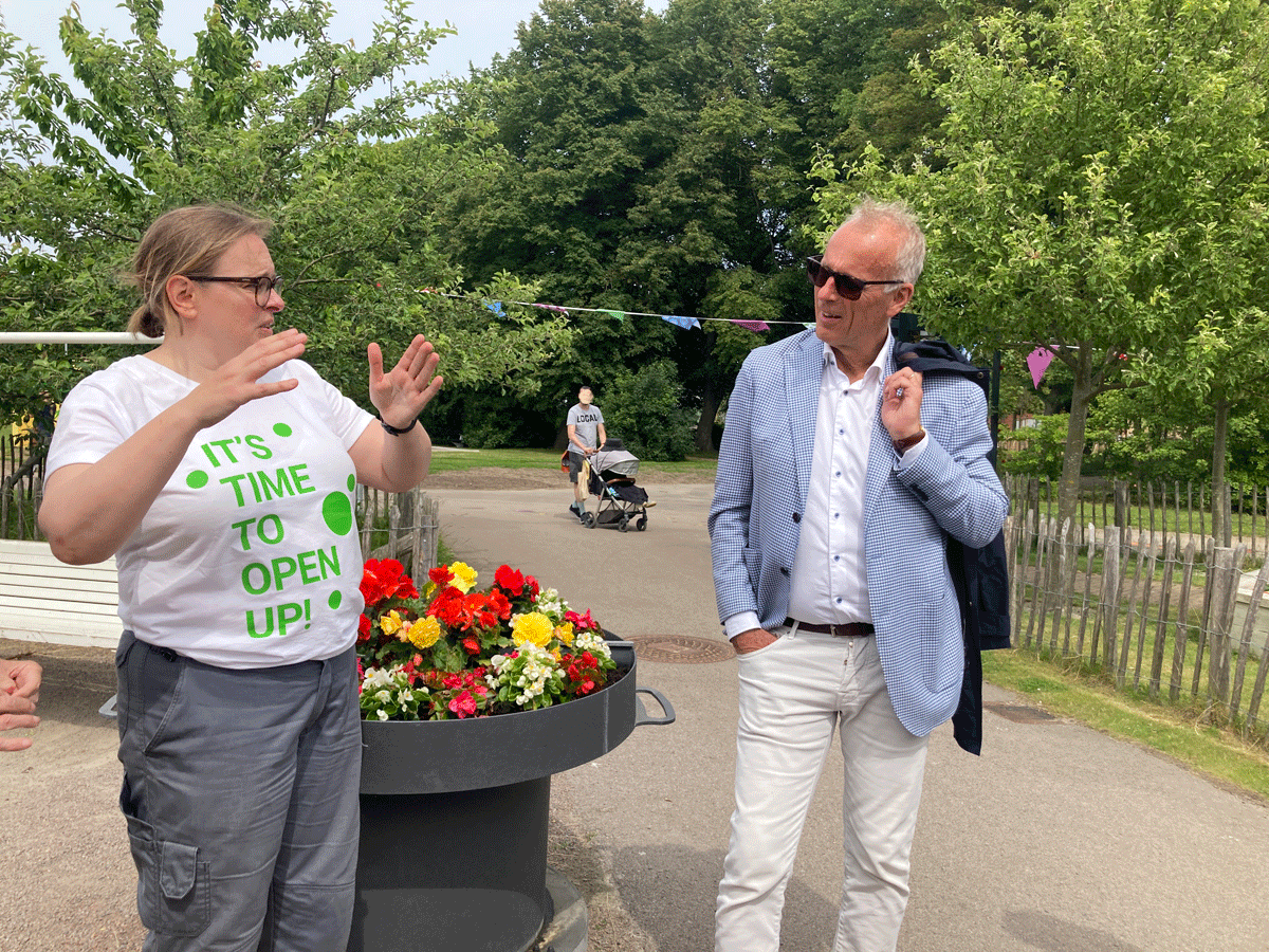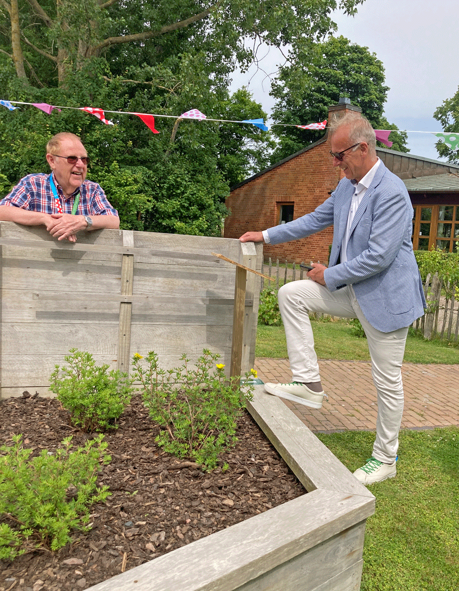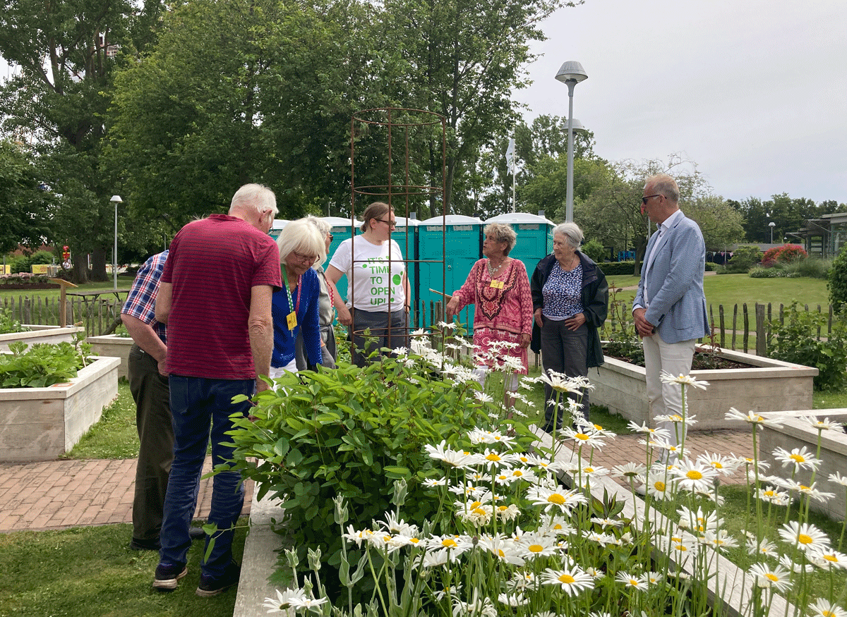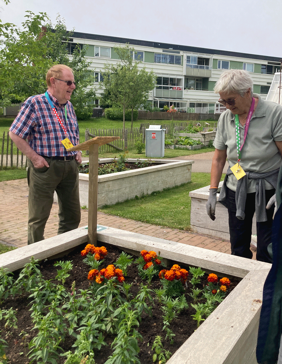 Nu har vi en oerhört fin odling på Drottninghög, och för några dagar sedan kom Palle Lundberg, Helsingborgs stadsdirektör och hälsade på oss. Ett mycket trevligt besök, med berättande och pratande och fotograferande, som avslutades med kaffe och fikabröd. Jag vågar nog påstå att han blev smått imponerad av vårt gemensamma arbete och hur fint det har blivit. Något som även många andra som stannat till vid odlingen har uttryckt.