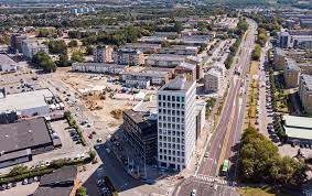 Den här bilden, visar det 11 våningar höga ”Drottningen” där bland annat Helsingborgshem numera har sitt huvudkontor.