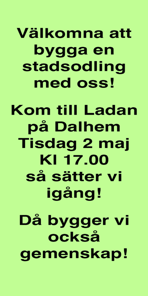 Vi vänder oss till alla på Dalhem med omnejd, som vill vara med i detta härliga äventyr, att ha en superfin stadsodling kopplad till övriga fantastiska aktiviteter som erbjuds vid Ladan på Dalhem.