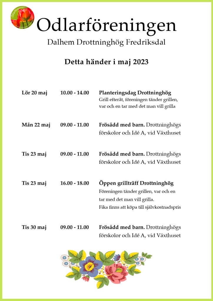 Drottninghög Växthuset, KalendariumHänder i Maj! maj 10, 2023 odlarforeningen Utdrag ur Odlarföreningens kalendarium Dela detta: Dela på X (Öppnas i ett nytt fönster) X Dela på Facebook (Öppnas i ett nytt fönster) Facebook Dela på LinkedIn (Öppnas i ett nytt fönster) LinkedIn E-posta en länk till en vän (Öppnas i ett nytt fönster) E-post Gilla Laddar in … Relaterade Publicerad av odlarforeningen Visa alla inlägg av odlarforeningen