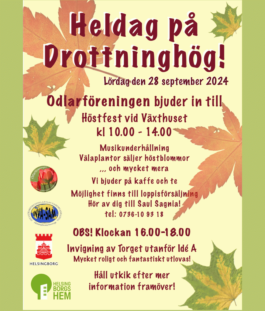 #helsingborgshem, #hyresgästföreningen, #odlarforeningen_hbg, Arrangemang, Biblioteket Idé A, Café Växthuset, DrottningH, Drottninghög, Drottninghög Växthuset, Fest, Höstfest, InformationHänder på Drottninghög september 17, 2024 odlarforeningen Dela detta: Dela på X (Öppnas i ett nytt fönster) X Dela på Facebook (Öppnas i ett nytt fönster) Facebook Dela på LinkedIn (Öppnas i ett nytt fönster) LinkedIn E-posta en länk till en vän (Öppnas i ett nytt fönster) E-post Gilla Laddar in … Relaterade Publicerad av odlarforeningen Visa alla inlägg av odlarforeningen