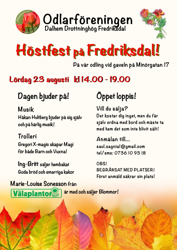 #odlarforeningen_hbg, Fredriksdals odling, Höstfest, InformationHÖSTFEST på Fredriksdal! augusti 11, 2025 odlarforeningen … och en bild säger med än tusen ord. Sägs det… Dela detta: Dela på X (Öppnas i ett nytt fönster) X Dela på Facebook (Öppnas i ett nytt fönster) Facebook Dela på LinkedIn (Öppnas i ett nytt fönster) LinkedIn E-posta en länk till en vän (Öppnas i ett nytt fönster) E-post Gilla Laddar in … Relaterade Publicerad av odlarforeningen Visa alla inlägg av odlarforeningen