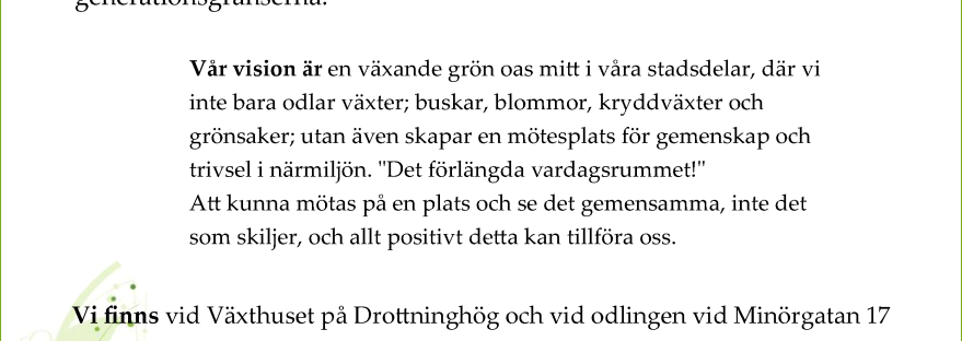 Det är inte bara inför H22 nästa sommar vi arbetar för vår odlarförening, och att våra odlingar ska vara vackra, blomstrande och välkomnande oaser i staden. Det är än mera för att skapa en nutid och en framtid som en härlig mötesplats för alla. En där vi inte bara odlar växter, utan också gemenskap och… Fortsätt läsa På gång!