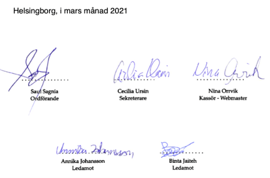 Den 10/7-2020 hoppade medlemmen Ingbritt Abrahamsson av föreningen via sms-kommunikation med ordförande Saul Sagnia. Anledningen till avhoppet uppgavs vara av personliga skäl.