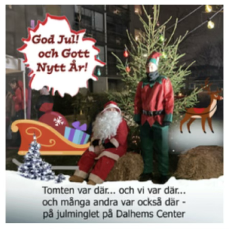 Den 9 december hade den traditionella julfesten på Dalhem varit tvungen att flytta utomhus till gården på baksidan av samma anledning som för julfesten på Tryckeriet. Restriktioner på grund av Covid. Inte desto mindre kom det ganska mycket folk som minglade. Barn och vuxna om vartannat.