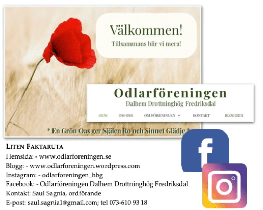 Marknadsföringen sträcker sig också till att inbegripa projektet att se om det är möjligt att starta en odling även på Dalhem. Om det finns tillräckligt med underlag, alltså intresserade personer, så kommer vi att försöka starta så tidigt som möjligt år 2022 med detta projekt. Här har Helsingborgshem ett mycket aktivt samarbete med oss.